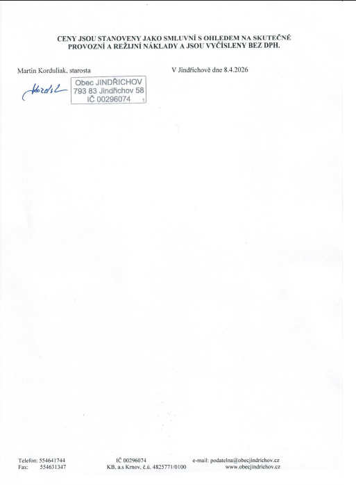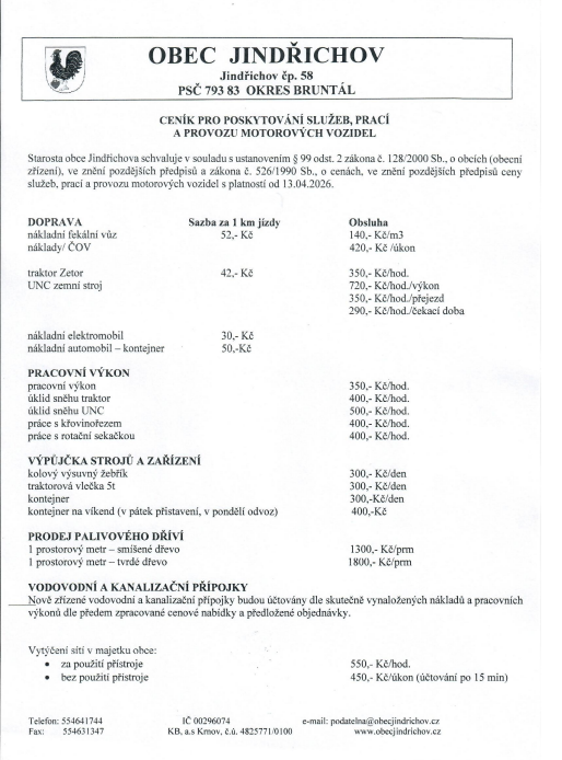 Sdělujeme občanům, že od 13. dubna 2026 je v platnosti nový Ceník pro poskytování služeb, prací a provozu motorových vozidel.