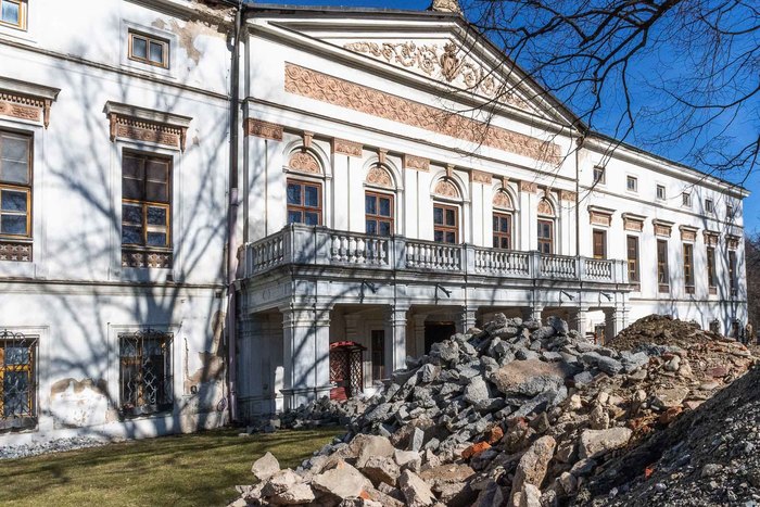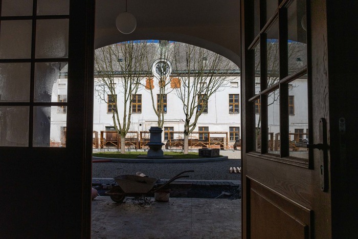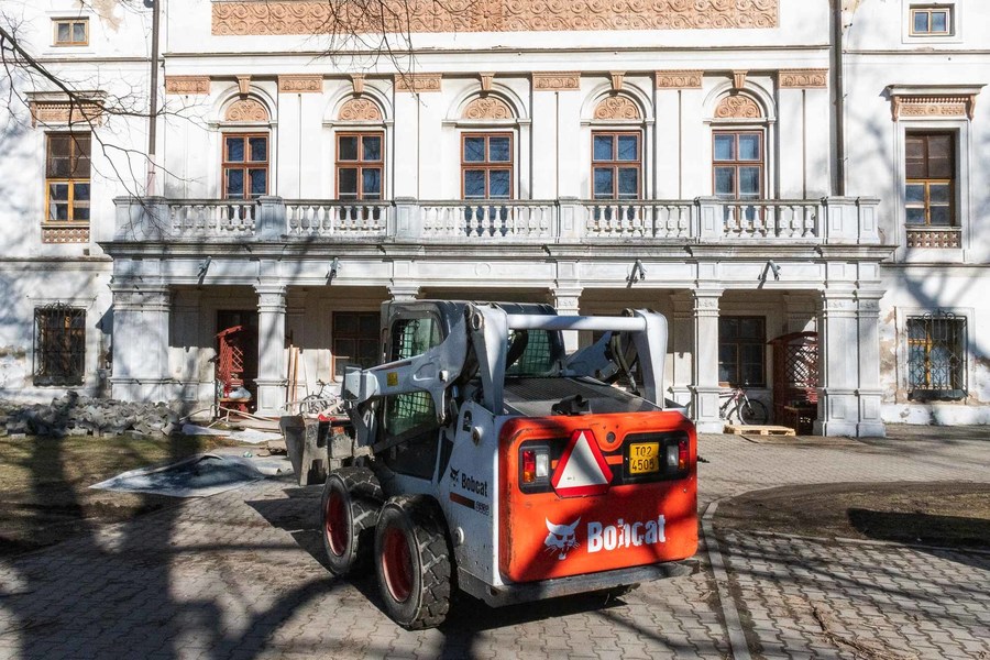 Je čtvrtek 3. března 2026. Polední slunce dopadá na jižní průčelí budovy zámku a stíny větví se zkracují. Jaro sice oficiálně ještě nezačalo, ale počasí tomu už napovídá. Na stavbě je to znát.  Stavební práce pokračují v lepší náladě a atmosféra je uvolněnější než v uplynulých zimních týdnech.