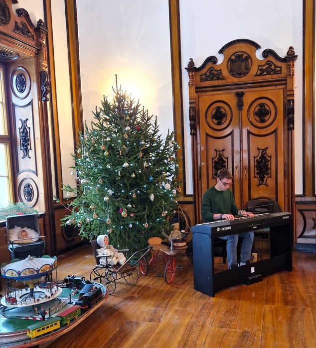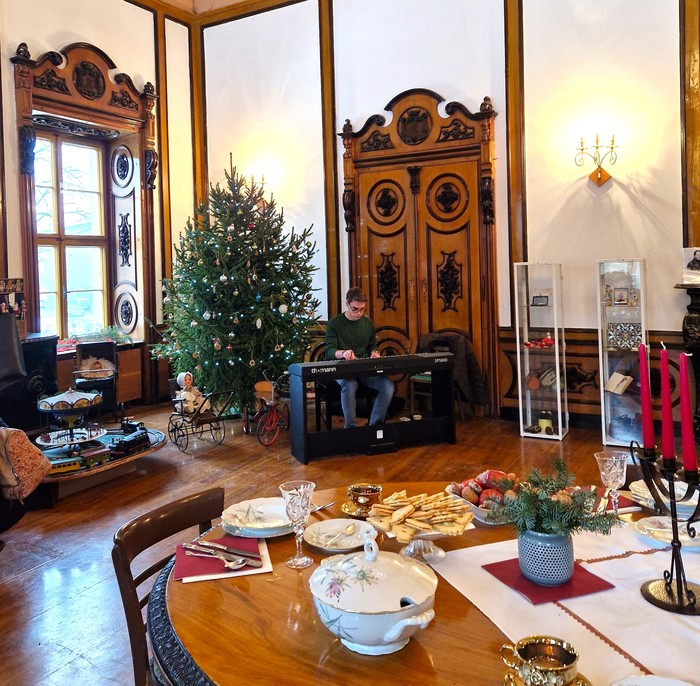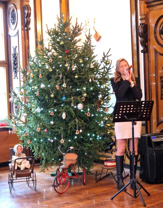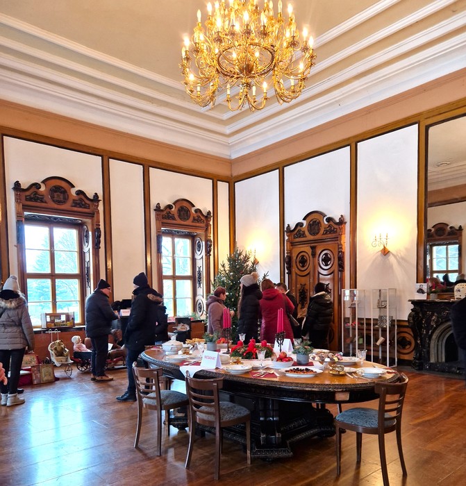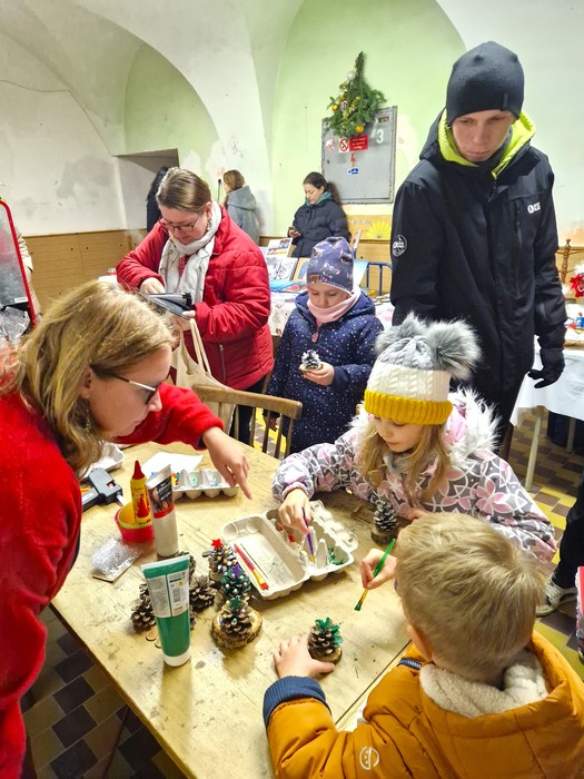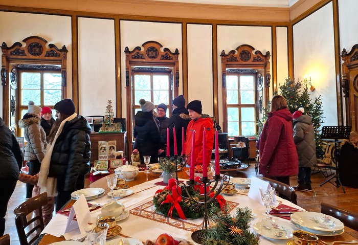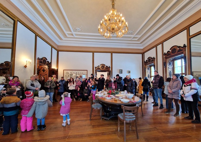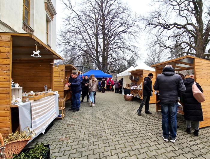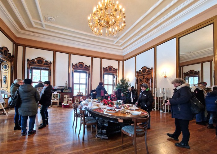 Rodina Kleinů byla významná podnikatelská rodina z období Rakouska-Uherska a zároveň poslední majitelé jindřichovského zámku. Proto jsme se rozhodli letošní vánoční trhy uskutečnit v duchu tehdejší doby pod názvem Vánoce u Kleinů. V sobotu 14. prosince 2024 se návštěvníkům otevřely vánočně vyzdobené prostory zámku. Ve vstupu do zámku každého přivítal starobylý dřevěný betlém, který zde byl pro tuto příležitost přemístěn z kostela sv. Mikuláše. V poschodí na chodbě k rytířskému sálu byly k vidění historické církevní ornáty. Byla také zpřístupněna zámecká knihovna s historickou kopií mapy Hennersdorfu. V pracovně barona byly vystaveny dobové svatební kostýmy a klobouky. Největším lákadlem byl rytířský sál se svátečně prostřenou tabulí, nazdobeným vánočním stromečkem a výstavou historických hraček. Celá expozice byla doplněna tabulemi s informacemi o rodině Kleinů, o dobových Vánocích, o vánočních zvycích, o vánoční kuchyni a s jinými historickými zajímavostmi. V rytířském sále u vánočního stromku vystoupili pro veřejnost naši nejmenší z mateřské školy se svými písničkami a básničkami, slečna Viktorie Smolíková zazpívala krásné vánoční písně a koledy a pan Yannick Provost zahrál kouzelné vánoční melodie. Slavnostně laděná vánoční hudba umocnila všeobecnou slavnostní adventní náladu. Návštěvníci se mohli občerstvit v zámecké kavárně a v přilehlých místnostech si prohlédnout expozici Malého jindřichovského muzea. V zámecké jídelně si mohli vybrat z nabídky vánočního menu a v mnoha prodejních stáncích si mohli zakoupit tradiční vánoční zboží - vánoční výzdobu, drobné dárky, svíčky, uzeniny, sýry nebo dobré jídlo a pití. Vánoční trhy si užili nejen dospělí, ale i děti, které si mohly před zámkem pohladit ovečky a lamu, vyrobit si vánoční ozdobu, zazvonit si na vánoční zvoneček nebo si nechat namalovat na obličej svého oblíbeného hrdinu. Na vánoční trhy přišlo množství místních i přespolních návštěvníků a věříme, že si zde každý našel to své - setkání s přáteli, procházku historií nebo nákup drobných dárků a jídla.