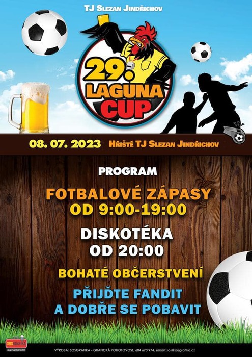Fotbalový oddíl TJ Slezan Jindřichov srdečně zve všechny příznivce malé kopané v sobotu 8. července 2023 od 9:00 hod. na hřiště TJ na 29. ročník tradičního turnaje Laguna Cup. Těšit se můžete na celodenní fotbalové zápasy, bohaté občerstvení a večerní diskotéku s DJ Martinem Hradečným.