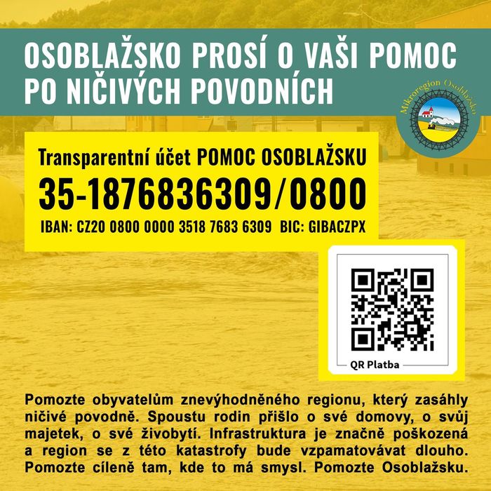 OSOBLAŽSKO PROSÍ O VAŠI POMOC PO NIČIVÝCH POVODNÍCH
