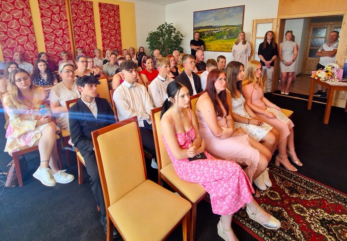 Ve čtvrtek 26. června 2025 v obřadní síni obecního úřadu se žáci 9. ročníku slavnostně rozloučili se školou, se svými učiteli i se svými spolužáky. Úvodem k deváťákům promluvil pan starosta Martin Korduliak, paní ředitelka Mgr. Zlata Steuerová a jejich třídní učitelka Mgr. Jana Houdková. Každý žák se podepsal do pamětní knihy Sboru pro občanské záležitosti, převzal si vysvědčení a malé dárky od školy i od obce. Také žáci poděkovali svým vyučujícím a se všemi se rozloučili malou prezentací. Na závěr pan starosta poděkoval i paní učitelce Mgr. Alžbětě Balvanové za celoživotní pedagogickou práci, protože i pro ni byl tento den posledním dnem v jindřichovské škole. Celá slavnost byla plná emocí a určitě na tento den budou všichni vzpomínat.