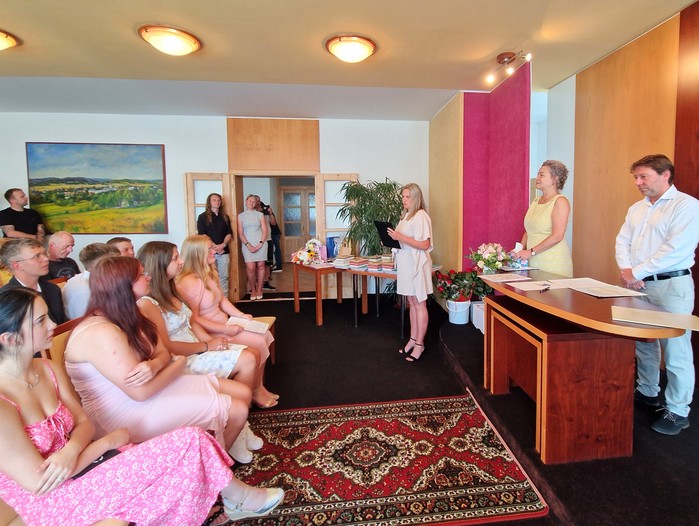 Ve čtvrtek 26. června 2025 v obřadní síni obecního úřadu se žáci 9. ročníku slavnostně rozloučili se školou, se svými učiteli i se svými spolužáky. Úvodem k deváťákům promluvil pan starosta Martin Korduliak, paní ředitelka Mgr. Zlata Steuerová a jejich třídní učitelka Mgr. Jana Houdková. Každý žák se podepsal do pamětní knihy Sboru pro občanské záležitosti, převzal si vysvědčení a malé dárky od školy i od obce. Také žáci poděkovali svým vyučujícím a se všemi se rozloučili malou prezentací. Na závěr pan starosta poděkoval i paní učitelce Mgr. Alžbětě Balvanové za celoživotní pedagogickou práci, protože i pro ni byl tento den posledním dnem v jindřichovské škole. Celá slavnost byla plná emocí a určitě na tento den budou všichni vzpomínat.