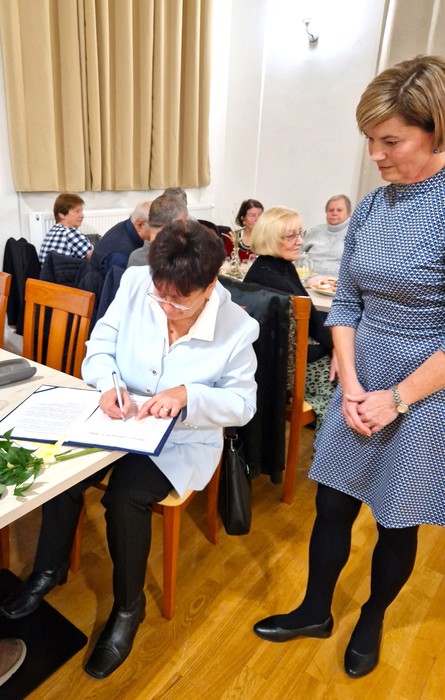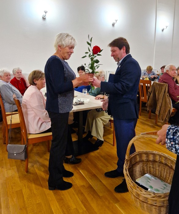 Ve čtvrtek 14. listopadu 2024 se v Penzionu a restauraci Eden sešli místní senioři, vedení obce a členky Sboru pro občanské záležitosti, aby společně popřáli jubilantům, kteří oslavili ve 2. pololetí letošního roku své narozeniny - 70, 75, 80, 85 a 90 let. Nejdříve přednesly básničky a zazpívaly písničky děti z mateřské školy. Potom pan starosta Martin Korduliak každému přítomnému jubilantovi popřál a předal malý dárek. Oslavenci se na památku podepsali do Pamětní knihy Sboru pro občanské záležitosti. Pro všechny přítomné byly připraveny chlebíčky, zákusky a víno. K poslechu i tanci hrála dechová hudba Zlatohorka. Celou akci připravil Klub seniorů a Sbor pro občanské záležitosti.