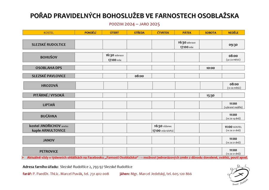 Pravidelné bohoslužby ve farnostech Osoblažska